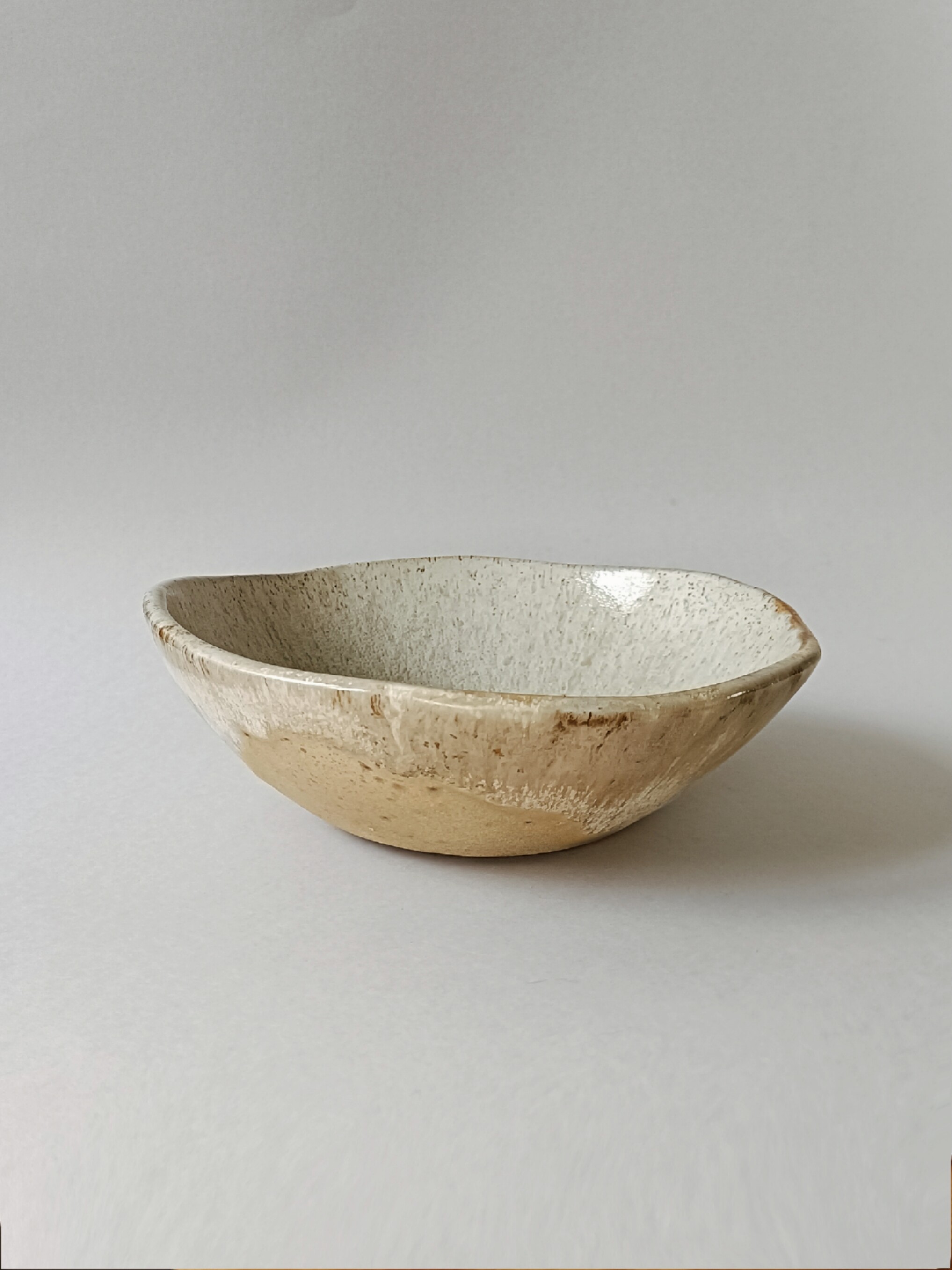 Miska o średnicy około 18 cm, wysokości około 6 cm. Wnętrze i zewnętrzny brzeg pokryte błyszczącym, nakrapianym szkliwem. Dół zewnętrznej strony wykończony matowym, nakrapianym szkliwem. Szkliwa dopuszczone do kontaktu z żywnością, odpowiednie do mycia w zmywarce.